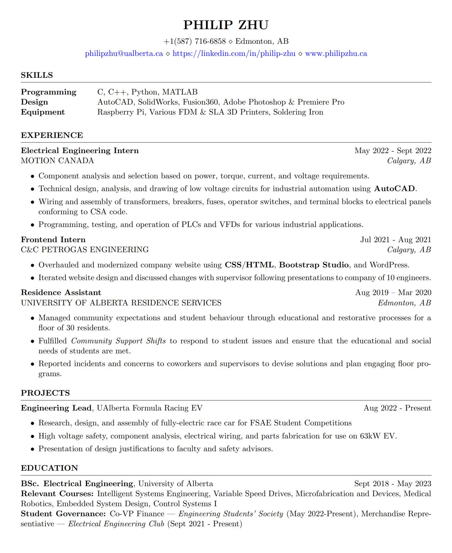 I am a dedicated and driven final year Electrical Engineering student at the University of Alberta with a passion for project management, mechatronics, and aerospace robotics.